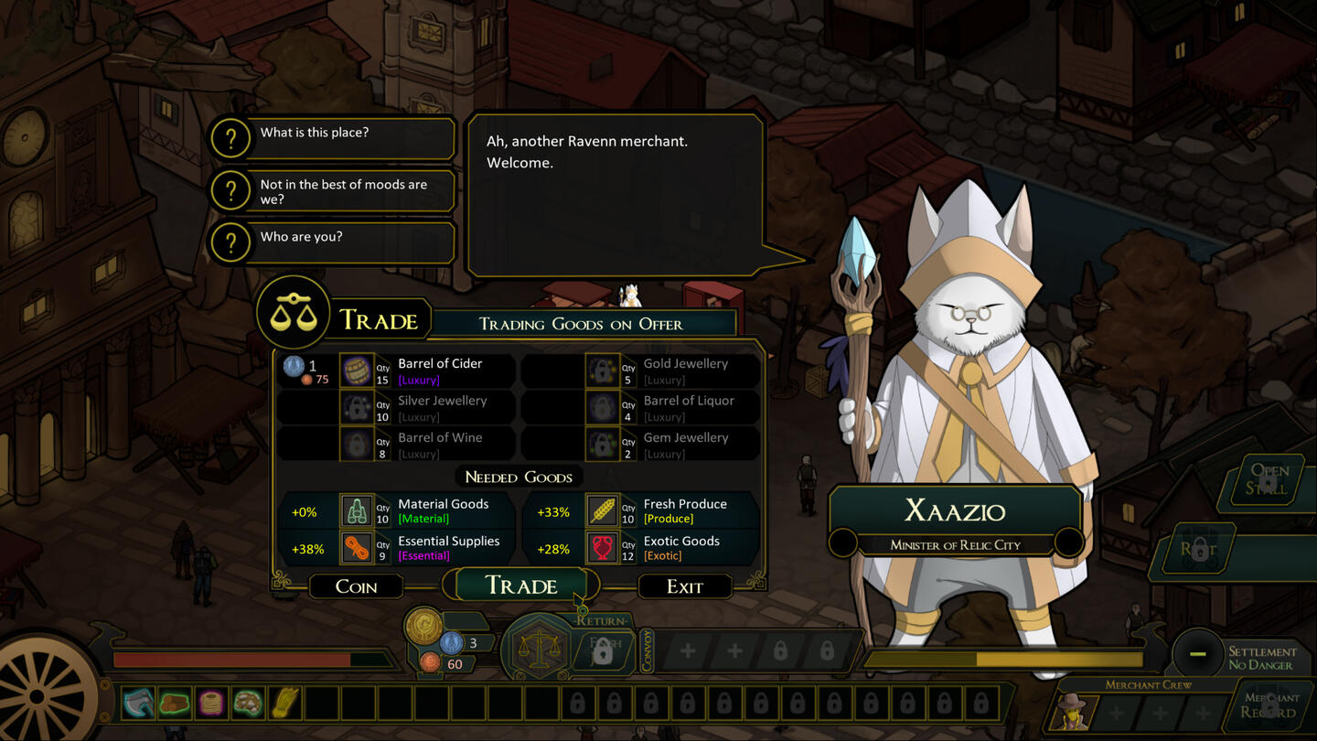 Follow Viia as she embarks on their adventure into Grand Emperium.Discover non-linear character-driven stories set in a fantasy world filled with trade and opportunity.Trade with a one-of-a-kind barter system. Barter goods directly with traders to earn a profit. Negotiate good deals, but be careful not to anger your traders.